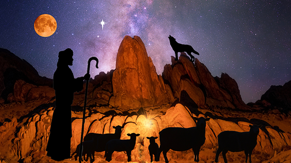 A shepherd lad cries wolf once too often! So, when one dark night, he sees a host of Angels in the sky, the other shepherds don’t believe him! But this time he’s not kidding! As a reward for his vigilance he is chosen to carry a lamb for a special baby that the Angels have told them about.